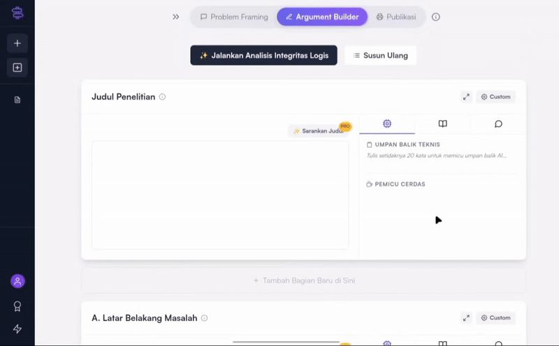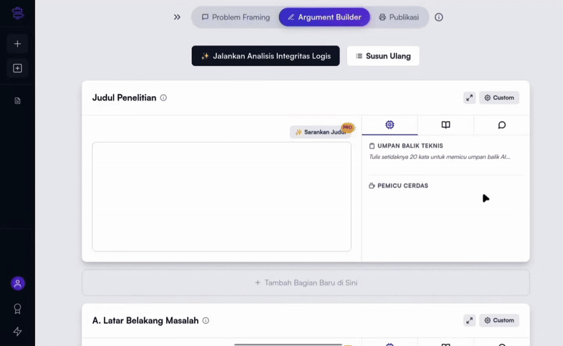 Pastikan 'benang merah' argumen Anda kuat dan koheren dari awal hingga akhir dengan penganalisis logika kami yang bekerja secara real-time.