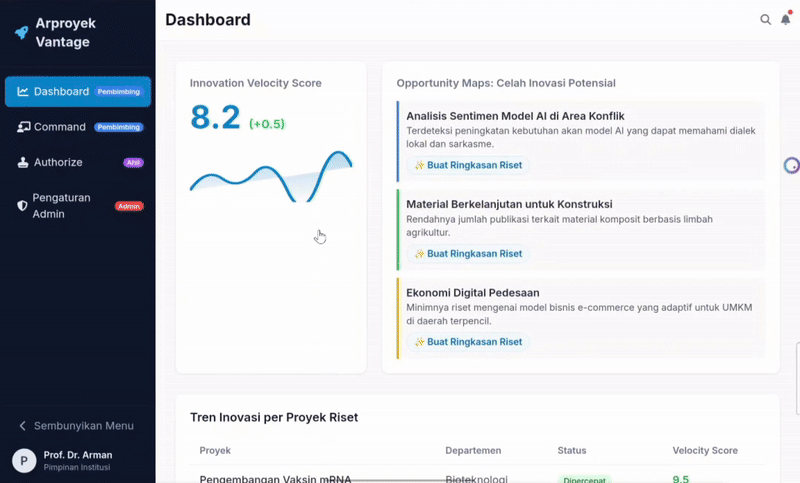 Sebuah dasbor kendali yang akan terintegrasi dengan Arproyek Guide, menciptakan siklus bimbingan yang transparan dan efisien.