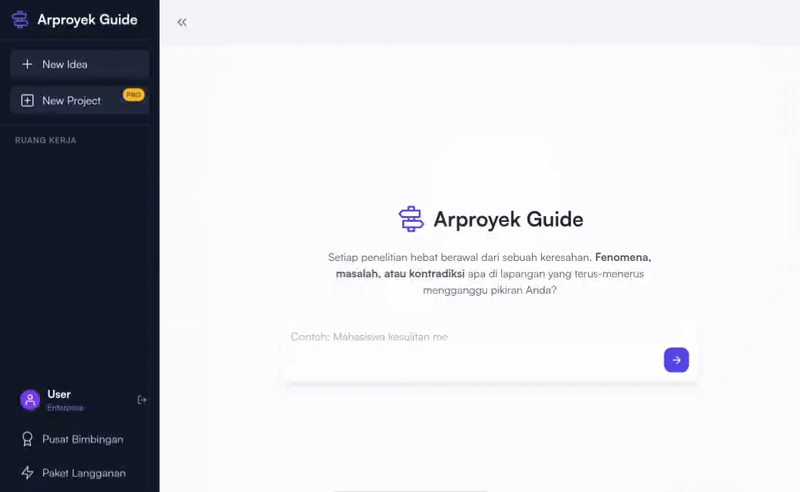Arproyek Guide adalah alat bantu berpikir, bukan joki. Anda memegang kendali penuh atas orisinalitas karya Anda.